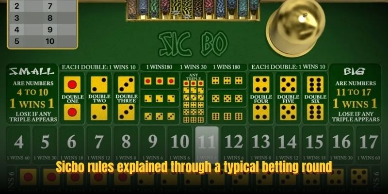 Sicbo rules explained through a typical betting round